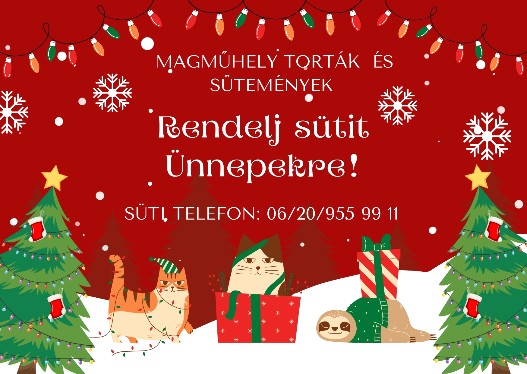 Mézes Magdalenka torta (6-7-8-9 mézes omlós tészta lap, kézzel nyújtott, kisütött). Kajmakos karamellás vajas tejszínes krém. Kakaó vagy dísz a tetején. Mézes sütemény többszörös díjnyertes különlegesség.